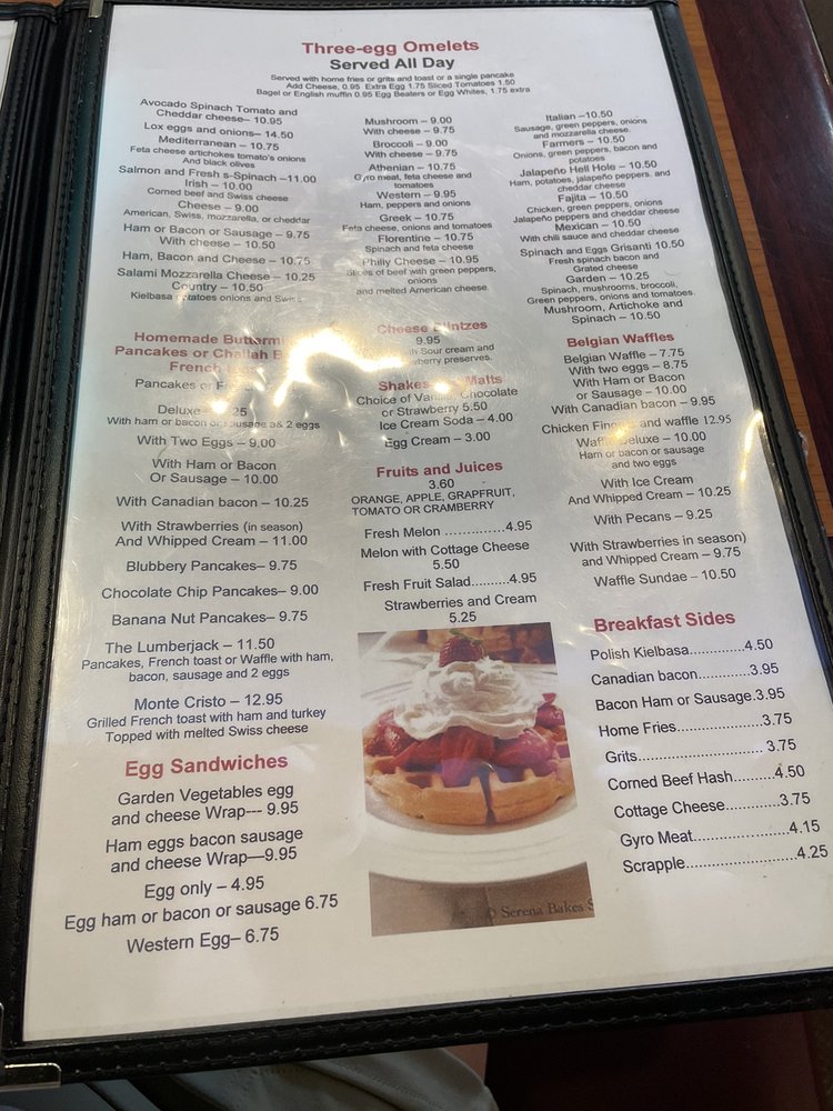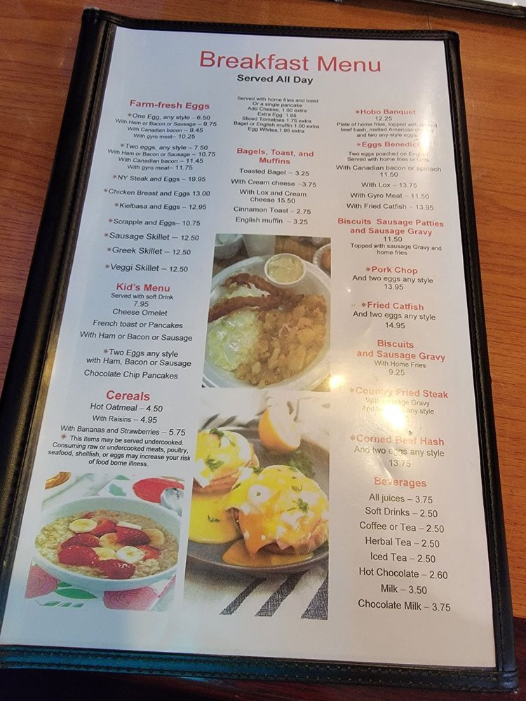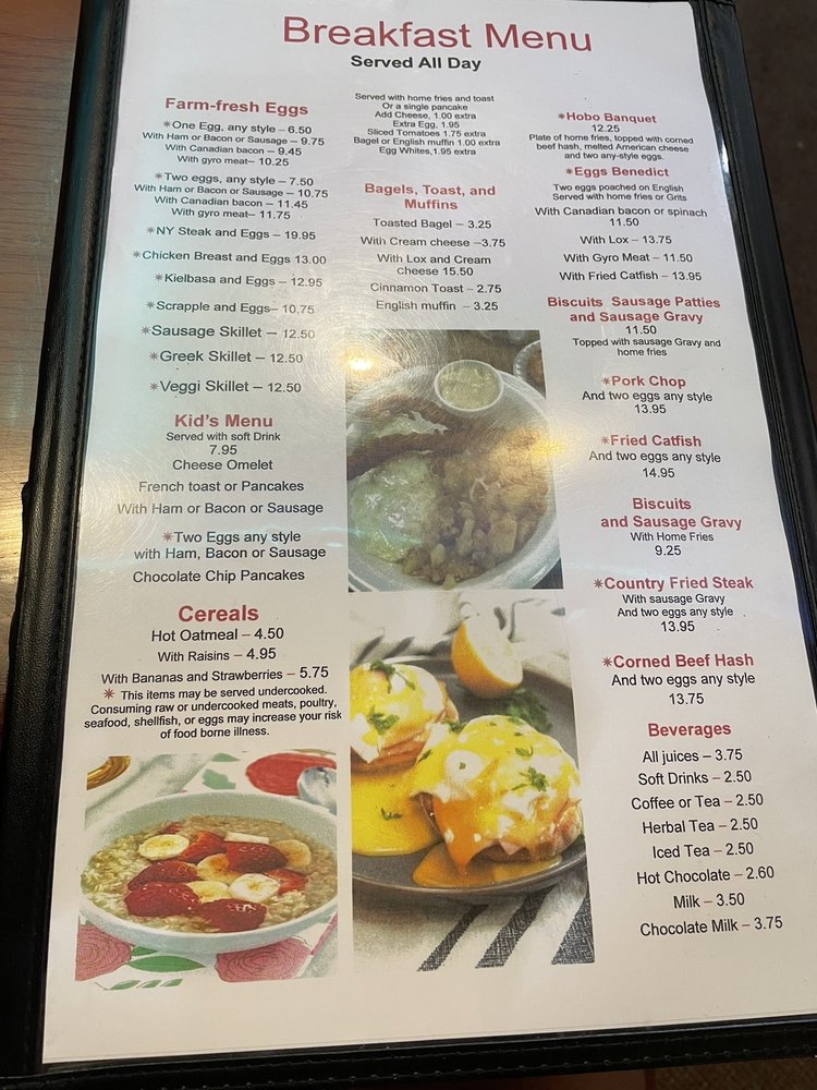 Gyro meat, feta cheese and tomatoes. Served with home fries or grits and toast and jelly.
